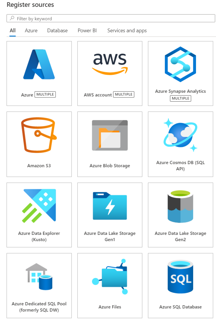 Microsoft Purview is designed to help enterprises get the most value from their existing information assets. It’s a cloud-based service where you can register your various data sources with Microsoft Purview. Registering your data in Microsoft Purview helps you discover and understand data sources. Your data sources remain in place, but a copy of the metadata for the source is added to Microsoft Purview. The following image displays some of the data sources supported by Microsoft Purview: